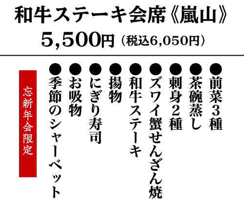 ※新年1月2日・3日は忘新年会メニューをお休みさせていただきます。